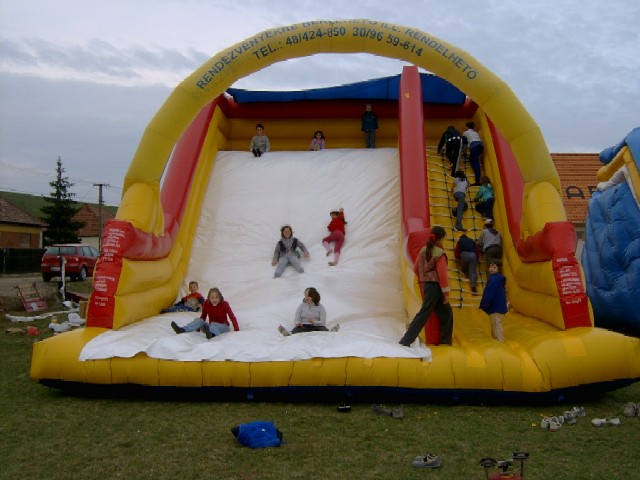 Óriáscsúszda: A gyermekek a jobboldalon lévő kötéllétrán jutnak fel a csúszda tetejére, ahonnan csúszva érkeznek az óriáscsúszda ugráló részére, majd a talaj érintése nélkül kezdődhet újra a játék.